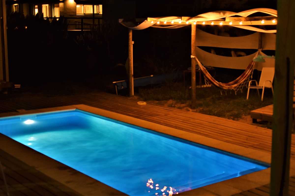 Quincho Jardín, fue diseñado y pensado para nuestros huéspedes. Está a pocas cuadras de la playa rodeado de Naturaleza. Cuenta con patio cerrado con barbacoa independiente y amplio deck techado. Tiene cómodo somiers de dos plazas y un sillón cama, todo integrado. Una kitchenette completa. Y además un hermoso y amplio baño con bañera. Tiene WIFI, TV , Caja de Seguridad, Aire Acondicionado ❄️ y estufa a leña 🔥. En Otoño-Invierno estamos con Desayuno casero ☕️ incluido y leña de Cortesía.