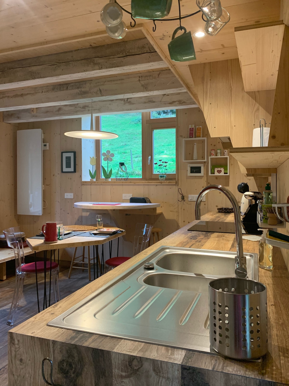 Venez faire l'expérience unique en famille ou entre amis de notre cocon, au coeur de la forêt vosgienne, à 15 minutes de Gérardmer. Cette maison de famille rénovée dans un style chalet "cosy mountain" vous offrira des moments inoubliables, hors du temps. Amoureux de cuisine conviviale, un piano de cuisson Lacanche est à votre disposition dans l'immense espace de vie. Baby Foot Bonzini.