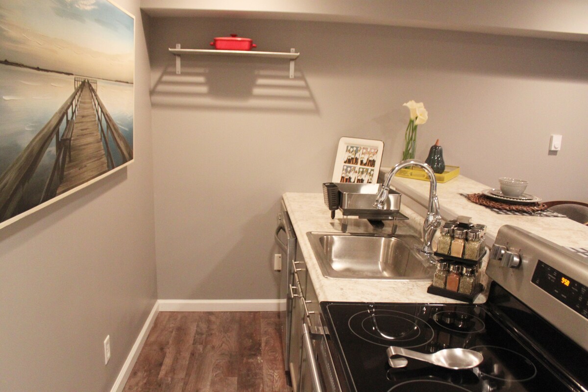 This new upscale apartment offers 2bed/1bath & is located 2.5 blocks from Mayo Clinic! This 520 square foot 2 bedroom space is perfect blend of urban style with luxury finishes. The open-concept living space features a fully equipped kitchen and living room. Enjoy the free Samsung stacked washer/dryer and large tub/shower combo bath. Guests have 1 designated parking space in parking lot. Book your long or short stay today and experience the best of urban living right by Mayo Clinic.
