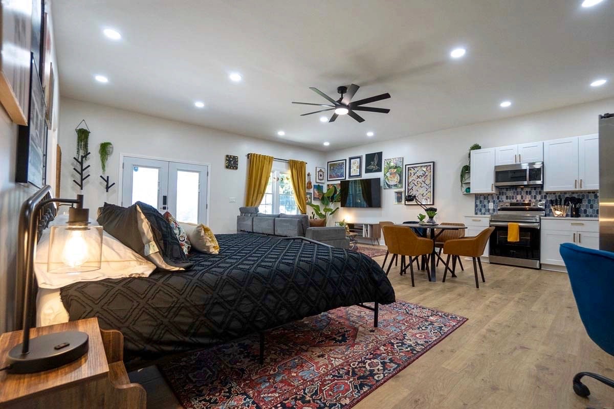 Üdv mindenkinek Georgiában! 25 perc/20 mérföldre a MERCEDES BENZ WORLD CUP-TÓL! Ez az egyedi stúdió saját stílussal rendelkezik. Tágas stúdiónk 5 az 1-ben: nappali, irodahelyiség, alvóhely és teljesen felszerelt konyha. És bónuszként egy MOSÓ- és SZÁRÍTÓTORNYOT találsz a fürdőszobában, amelyet csak te használhatsz! Ez a hely egy család otthonához kapcsolódik. Van egy kutya az ingatlanban. Egy rendkívül csendes környéken vagyunk (nagyszerű sétákhoz), mindössze 20 percre Atlantától.