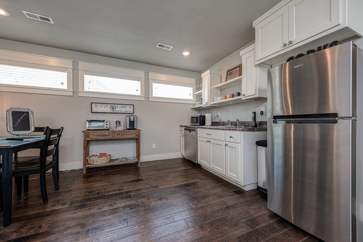 Üdvözlünk a Bentonville belvárosának szívében található, szerkezeti falusi vendégházunkban. Úgy fogod érezni, mintha visszalépnél az időben egy teljesen téglából készült történelmi épületbe, de a hátsó udvarunk 2023-ban fejeződött be a szeretet és vendégszeretet munkájaként. Élvezd a közvetlen hozzáférést a Park Springs Parkhoz és a háztömb végén található ösvényekhez, vagy egy rövid sétát/utazást a belvárosi térre. Az ingatlan főépületében lakunk, de úgy terveztük meg a kisházat, hogy maximalizáljuk a vendégek magánéletét. Üdvözlünk!