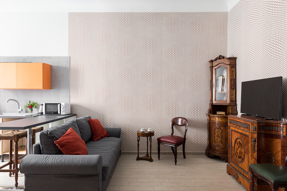 Fabio lakása csendes környéken, közel a Colosseumhoz és a metróhoz.