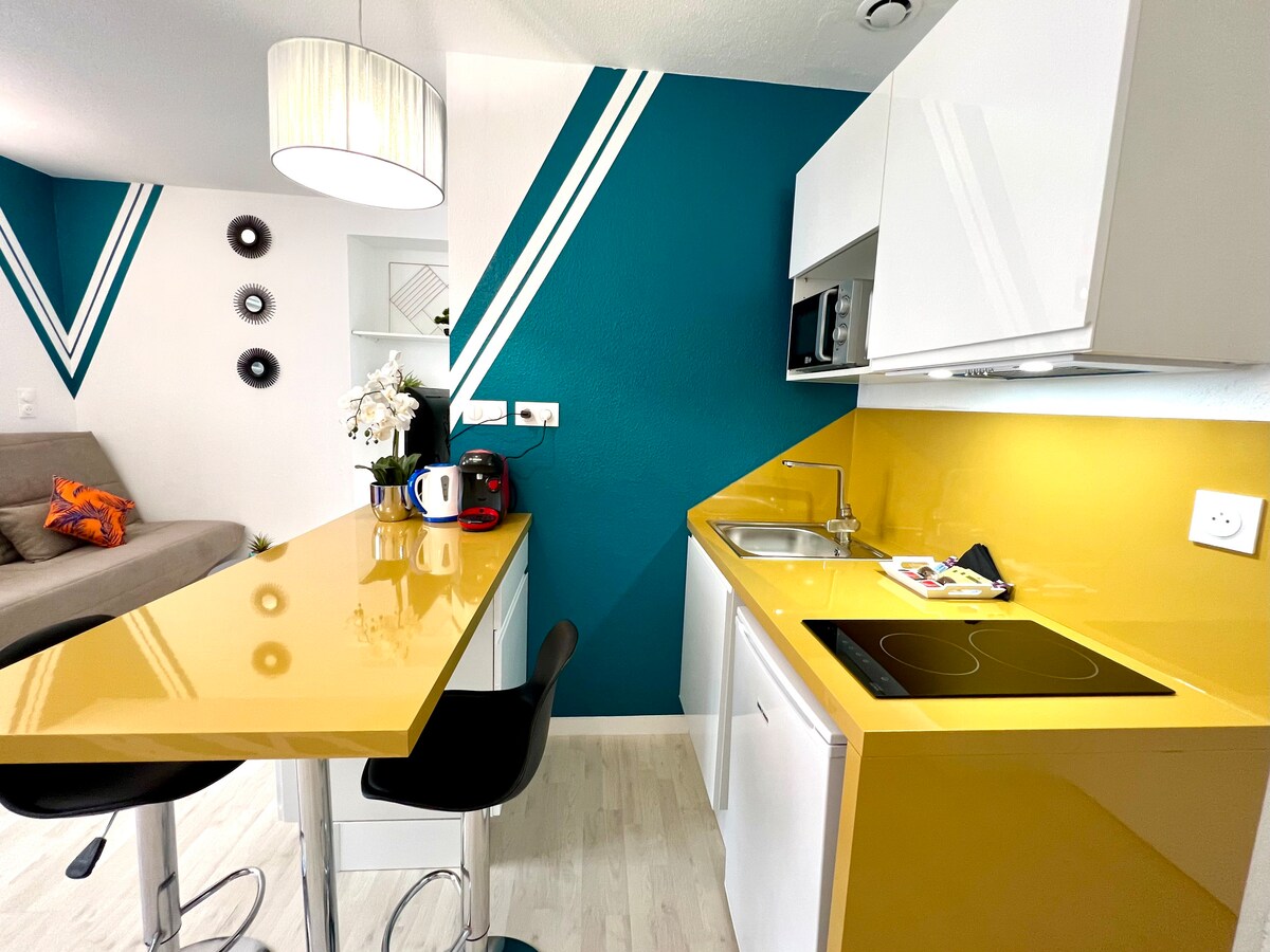 Belfort városközpontjában, egy csendes környéken, közel minden üzlethez, ez a stúdió el fog csábítani a kényelmi szolgáltatások minőségével, a dekoráció és a teljes felszerelés józanságával és eleganciájával. Ideális egy személy vagy egy pár számára, szabadidős vagy profi utazáshoz. Zárt kerékpártároló áll rendelkezésre. A tulajdonos üdvözölni fog, és minden szükséges információt megad neked, hogy élvezhesd a várost és környékét.
