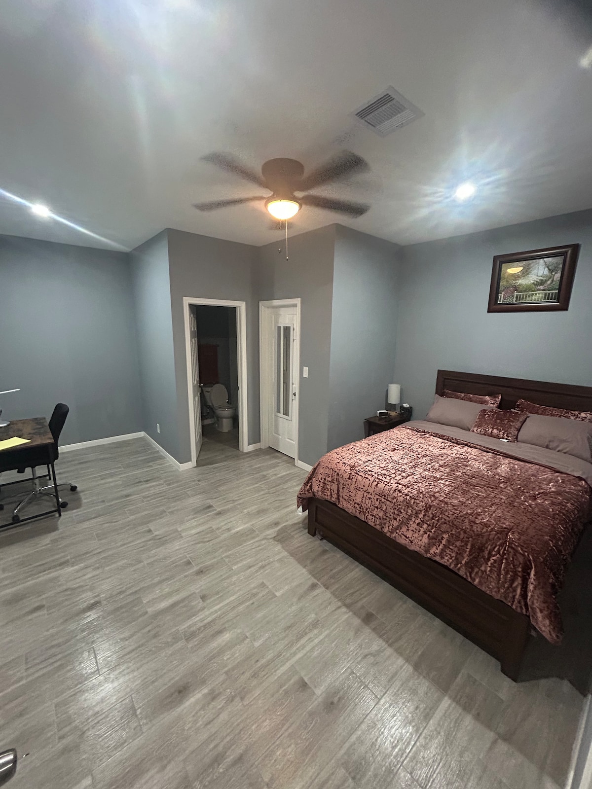 *STÚDIÓ PRIVÁT FÜRDŐSZOBÁVAL* *CSAK EGY SZEMÉLY, vendégek szigorúan tilosak* *Érkezés 18:00, távozás 10:00* Az utolsó pillanatban történő és/vagy azonnali foglalások is üdvözlendők. Bár nem kínálunk luxusélményt a Waverly Farmson, biztonságos, tiszta, csendes és megfizethető helyet kapsz, ahol alhatsz és zuhanyozhatsz. Stúdió saját fürdőszobával, külön külső bejárattal. Percekre van az IAH-tól, Uber/Lyft-barát helyen. Wifi és parkolás az árban. Járattörlés/-késés, éjszakai átszállás, kora reggeli járat, ingázók