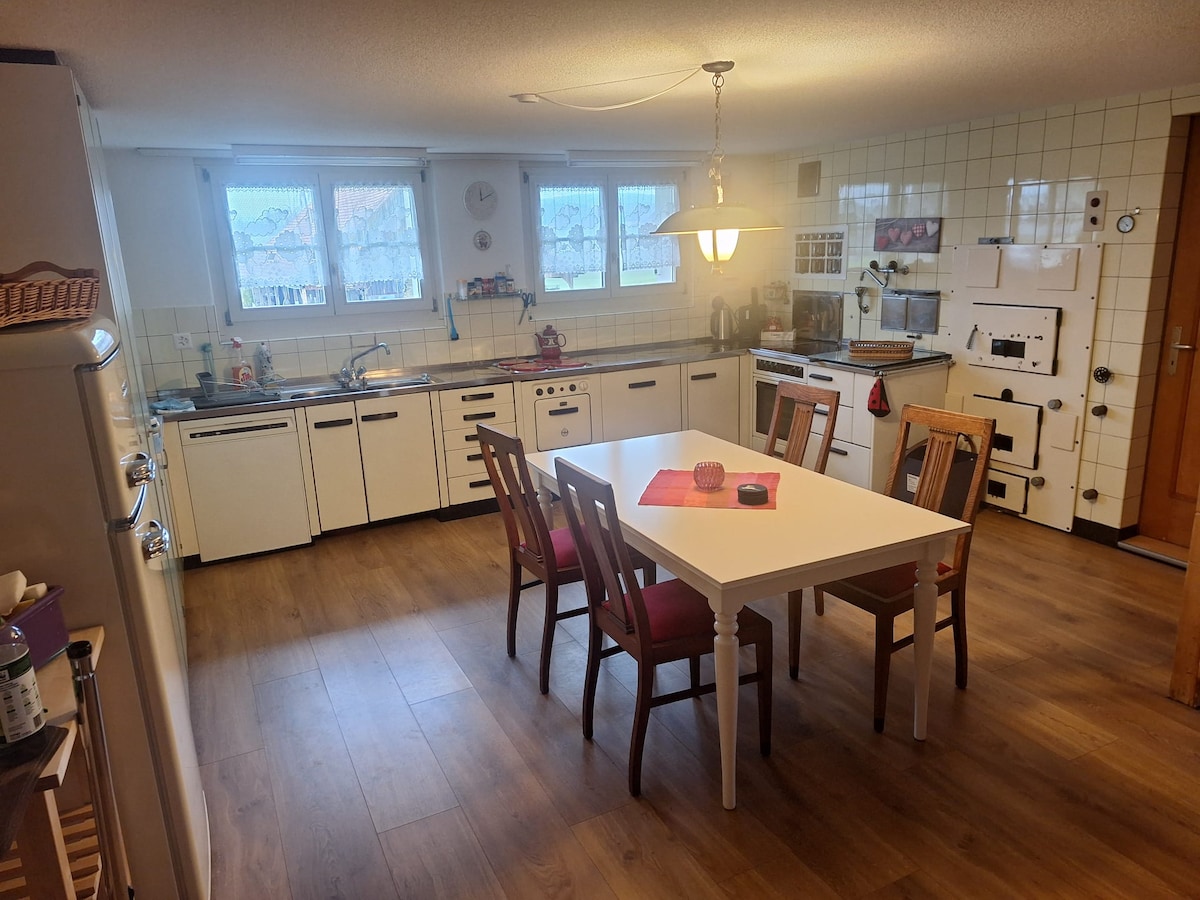 A vendégházunk a farmunk mellett van. Vidéken található, de csak 10 perces autóútra Luzern városától. Csodálatos kilátás nyílik a Rigi hegyre és a Pilatus hegyre. Ez egy új és modern apartman, csak egy szobával és egy gyönyörű galériával. Így ideális hely egy pár vagy egy kis család számára (nincs külön hálószoba!). A fürdőszobában kád és zuhanyzó található. Jól felszerelt konyhád van.
