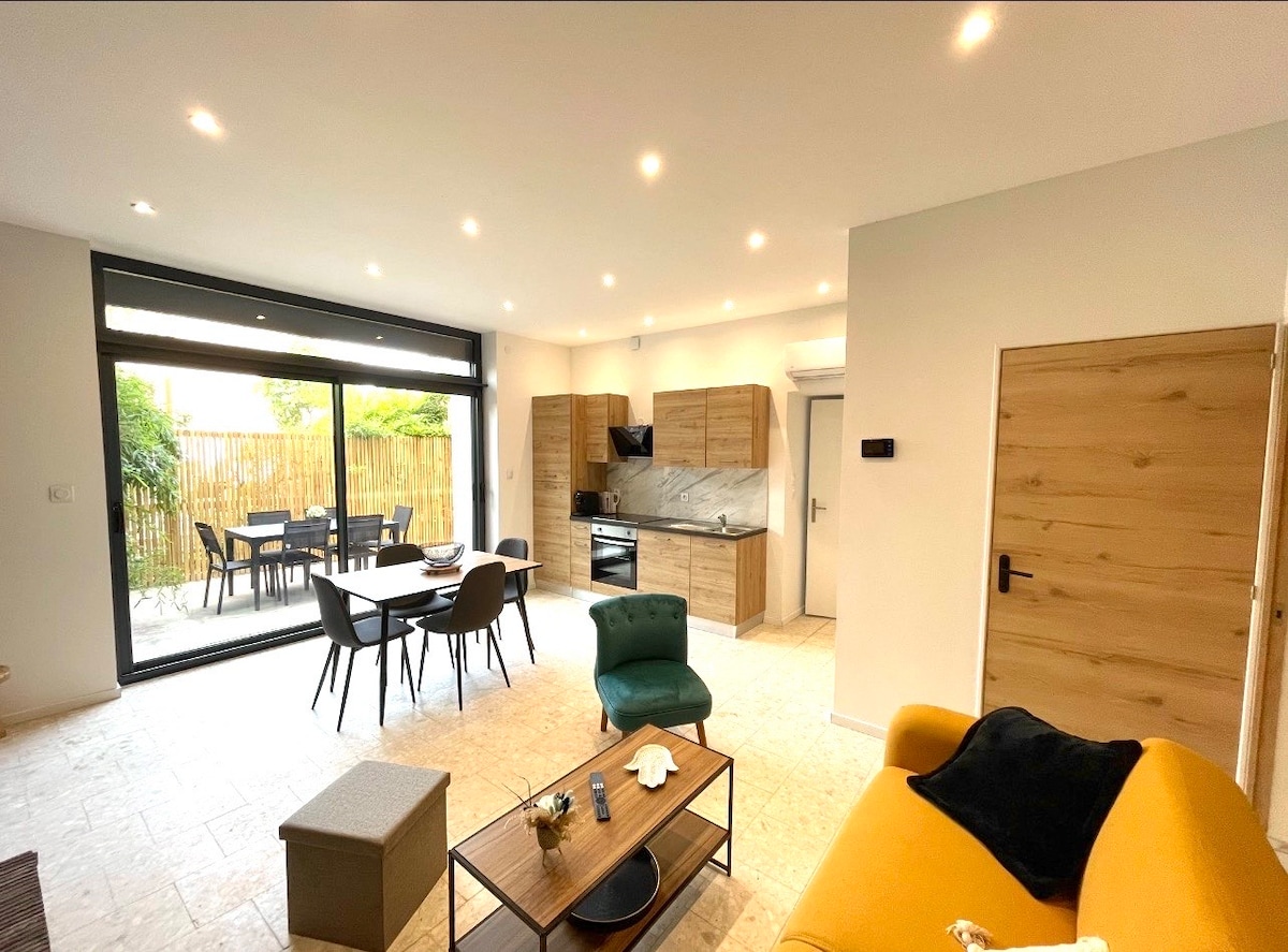 appartement récemment rénové pour plus de confort. Le logement est agréable, joliment décoré et bien équipé (four électrique, four micro-ondes, plaque induction, lave-vaisselle, lave-linge, Tassimo etc idéal pour un couple Une jolie pièce à vivre avec un canapé lit (2 places) téléviseur et chromecast. connexion wifi La chambre est de belle taille donnant sur le jardin avec un grand dressing et un lit 160 Une petite salle de bain avec douche italienne, sèche serviette et toilettes