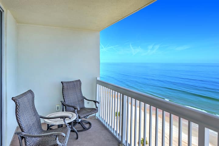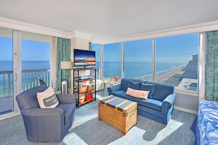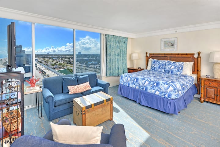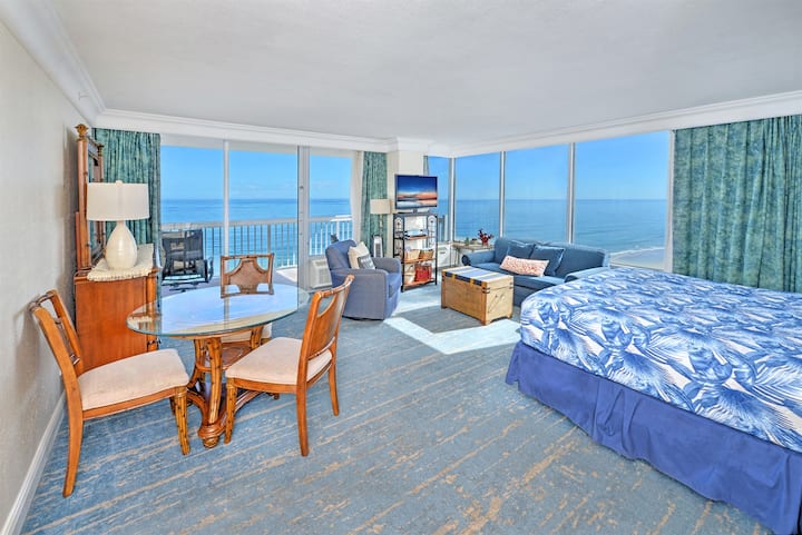 🌊 Óceánparti sarokstúdió nagy erkéllyel és lenyűgöző kilátással az Atlanti-óceánra! Ez a világos, 10. emeleti szálláshely egy puha king méretű ággyal, hangulatos nappalival, praktikus konyhával és egy tágas fürdőszobával rendelkezik, amelyben extra tárolóhely és tiszta zuhanyzó található. Tökéletes azoknak a pároknak, akik kényelmet, stílust és igazi tengerparti életet keresnek.