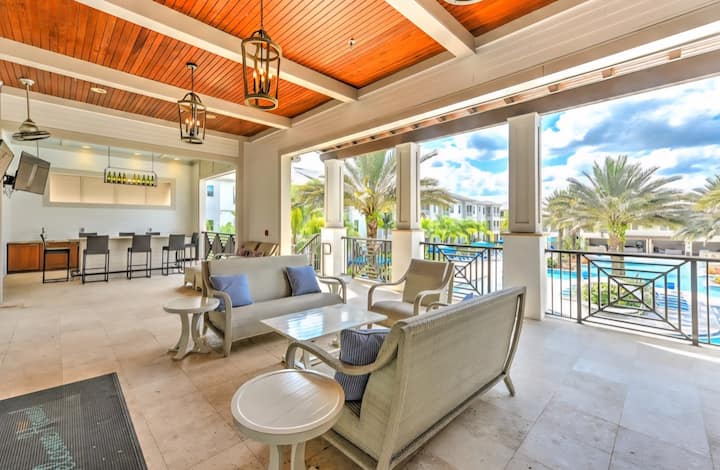 Pihenj a fedett teraszon, amely tökéletes a floridai időjárás élvezetéhez közvetlen napozás nélkül.