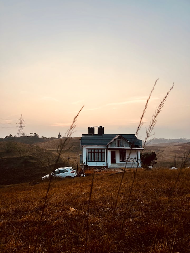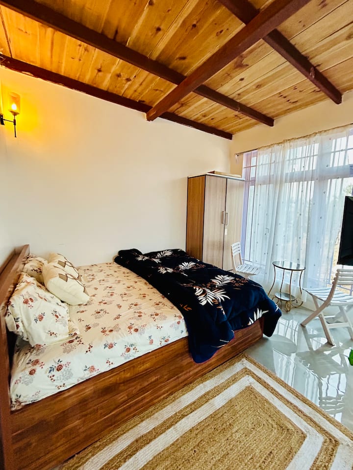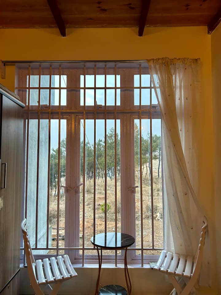 Skyfield hangulatos faépületi szoba kilátással a völgyre