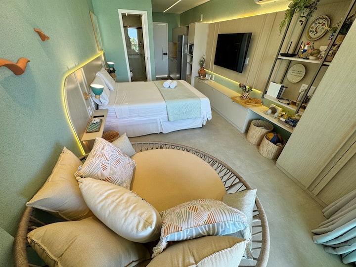Élvezd Porto de Galinhas legjavát kényelemben, kifinomultságban és 7 percre a tengertől a vadonatúj Beach Class Summer Residence-ben! Lapos, modern, erkélyes és teljes üdülőhelyi szerkezet, ideális pároknak és családoknak. Lakás osztott, Wi-Fi, TV, WC, étkezőasztal az erkélyen, legfeljebb 4 fő elszállásolására alkalmas, egy franciaággyal és két egyszemélyes ággyal. A legjobb az egészben: csak pár lépésre van a tengerparttól a Praia do Cupe-nál. Megtalálod a tökéletes helyet a pihenéshez, a szórakozáshoz és a felejthetetlen pillanatokhoz.