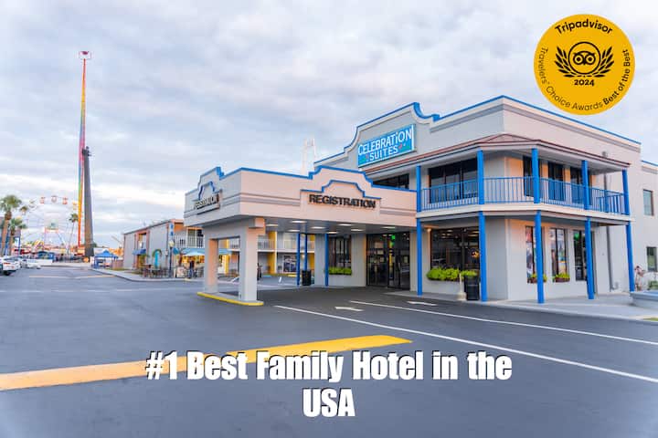A Celebration Suites lett a #6 Best Family Hotel 2020-ban! Minden szoba egy privát lakás, teljes konyhával, minden evőeszközzel, felár nélkül.