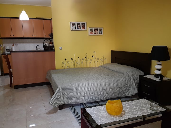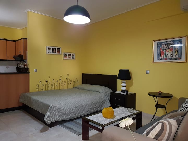 boldog, kényelmes stúdió egy nagyszerű helyen