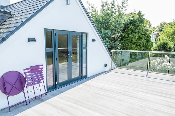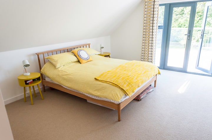 Két king-size, két kétszemélyes és két kétágyas hálószoba, a fő hálószoba és az egyik kétszemélyes ágy saját fürdőszobával rendelkezik - a hálószobában egy nagy terasz található asztallal és székekkel, amelyek a kertre néznek. Van egy családi fürdőszoba, két vendég wc és egy földszinti zuhanyzó.