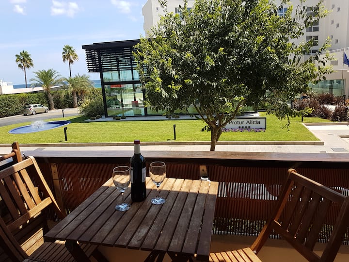 Üdvözlünk a „Tramontana” lakásban! Apartmanunk, amely közvetlenül a gyönyörű homokos strandok és a tengerparti sétány közelében található (kb. 1 perc sétára a tengerparti sétánytól és a homokos strandtól és 4Gm. a Cala Bona romantikus kikötőjéhez), egy 4 emeletes lakóépület 1. emeletén található, és újonnan felújított 12.2018 kiváló minőségű csempézett padlóval és Wi-Fi-vel felszerelt.