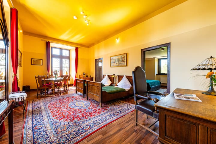 Világos lakosztály kilátással a Rajnára az Arenfels kastélyban