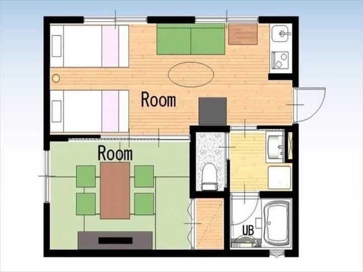 Ideális családok és csoportok számára: Tágas terek, amelyeket gyermekekkel is nyugodtan lehet használni.A japán stílusú szobában 3 futonágy található, így a lehető legjobban pihenhetsz.