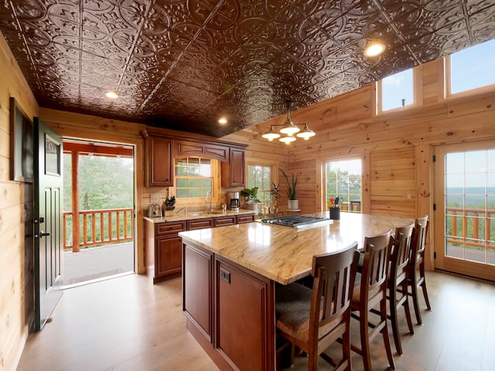 3 hálószobás/2 fürdőszobás modern faház csodálatos kilátással 22 hektáron