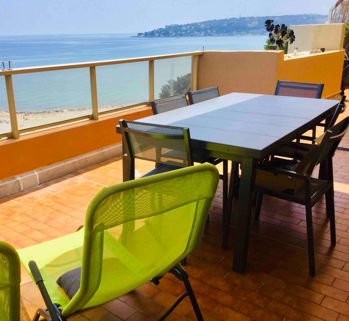 Tökéletes elhelyezkedés tengerre néző kilátással (30 méterre a SOLENZARA strandtól). 6 km-re Monacótól és 5 km-re az olasz határtól. Tágas és modern 2 hálószobás lakás, amelyet 2019 nyarán felújítottak. Az apartman a földszinten található, és nagy terasszal rendelkezik étkezéshez és pihenéshez. A fő hálószobában king-size ágy és kis hálószoba 2 egyszemélyes ággyal, valamint kihúzható kanapé a nappaliban. A lakás teljesen felszerelt, légkondicionált, nyitott konyhával és luxus fürdőszobával rendelkezik, káddal.