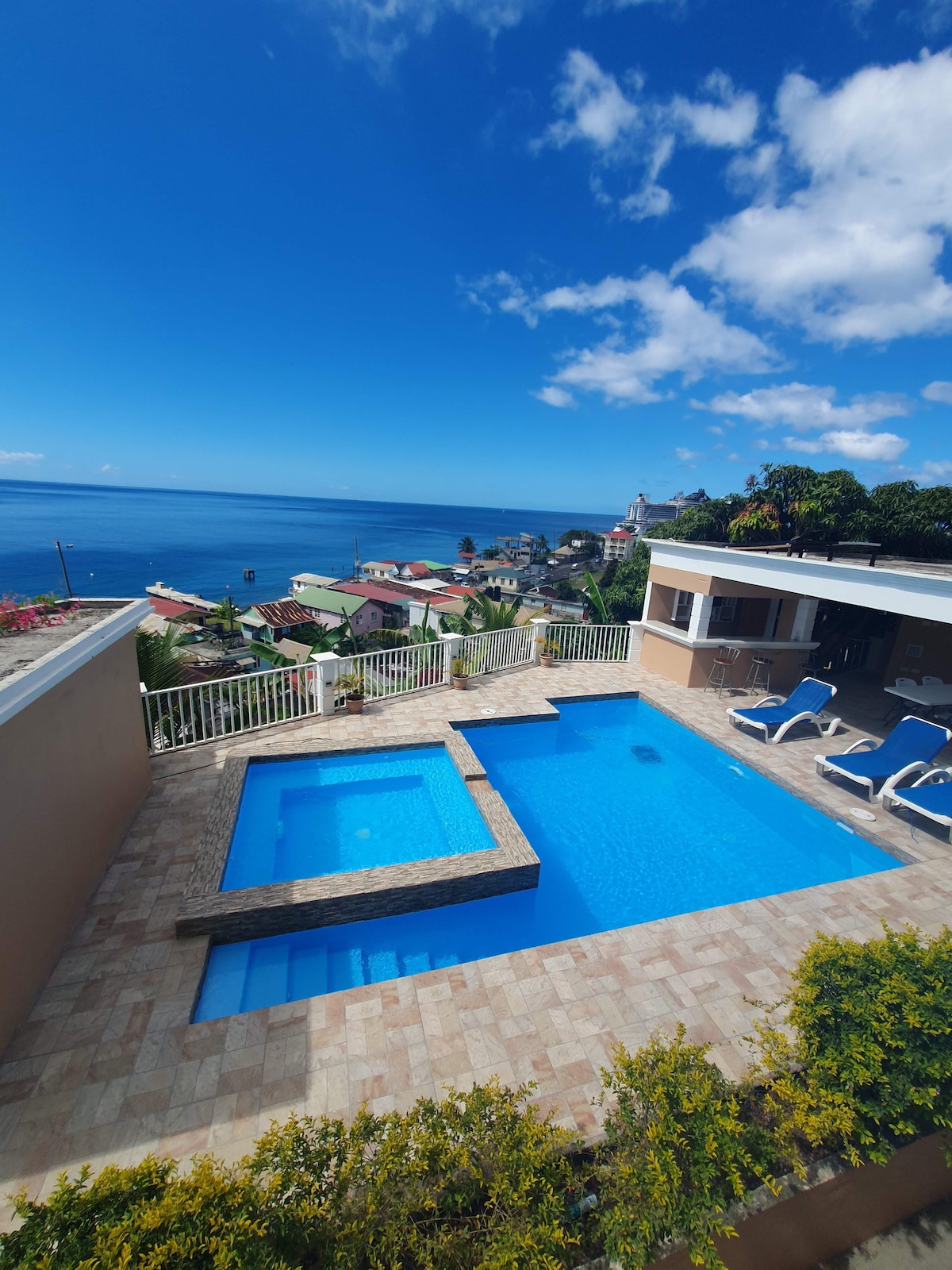 VIP Residence is known for its breathtaking view of the ocean, great customer service, and a very safe, secure and peaceful environment which is ideal for individuals, couples or groups here on business or vacation. It is located just 3 minutes from the capital so come and enjoy the luxury and convenience of this newly constructed apartment building. Sit by the pool or take a dip. Capture the sunset! Welcome to Dominica and thanks for choosing us!