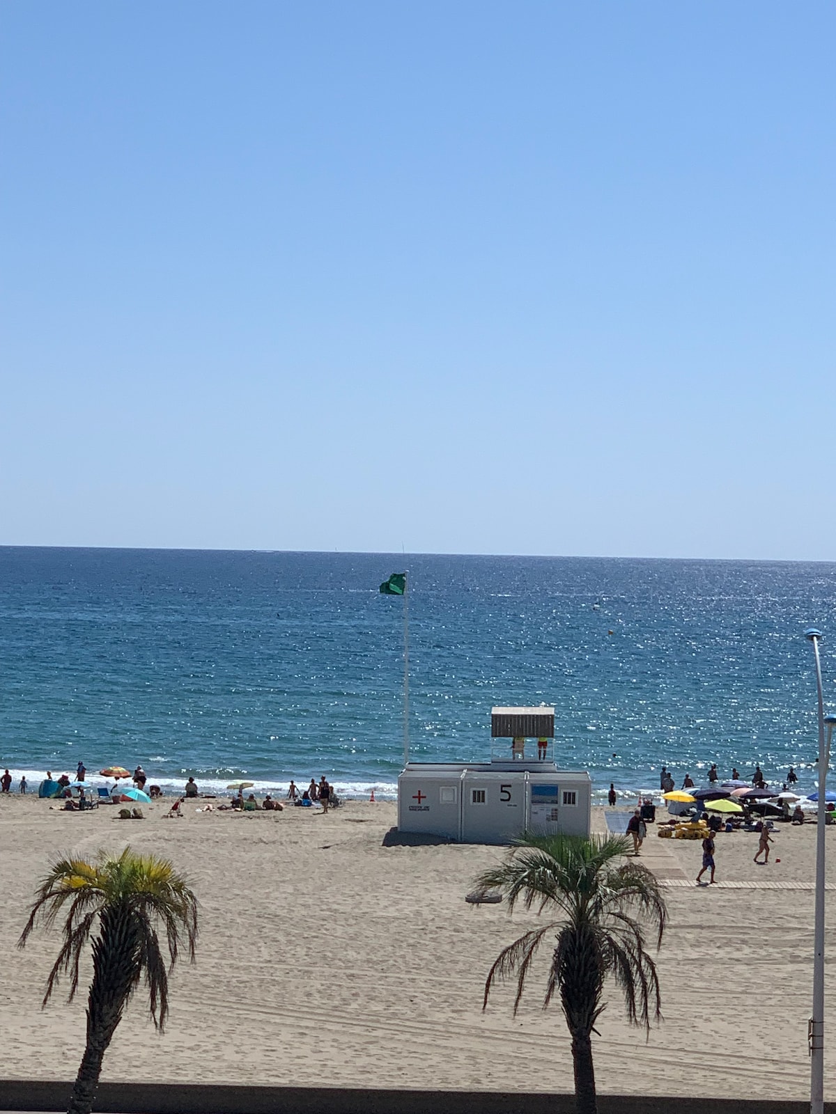 Grand studio (35m2) avec espace nuit (lit en 160X200),climatisé, au 7ème et dernier étage avec terrasse et vue sur la mer imprenable. Proche des commerces, de toutes commodités, des animations, du marché, des restaurants, du casino, du port .. Il n'y a pas de parking mais le stationnement dans les rues aux alentours est gratuit. L'appartement est traversant, orienté EST-OUEST. Salle d'eau moderne. Wc séparé. Horaires arrivées et les départs 15 H (flexibles). Linge inclus.