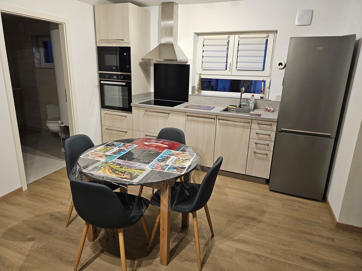 Új, 45m2-es, kényelmes és funkcionális szálláshely, amely belépési kóddal érhető el. A privát udvarban ingyenes a parkolás. A Strasbourg és Colmar között félúton (30 km) található hely 11 km-re található az Europa-Parktól. Ahhoz, hogy odaérj, szállj fel a Rhinau kompra (komp 6 perc), amely az első látványosságod lesz a Rajnán való átkeléshez és Németország eléréséhez. * 10% kedvezmény a partner pékségre/étteremre * A szálláshely légkondicionált * Ágynemű és törölköző az árban