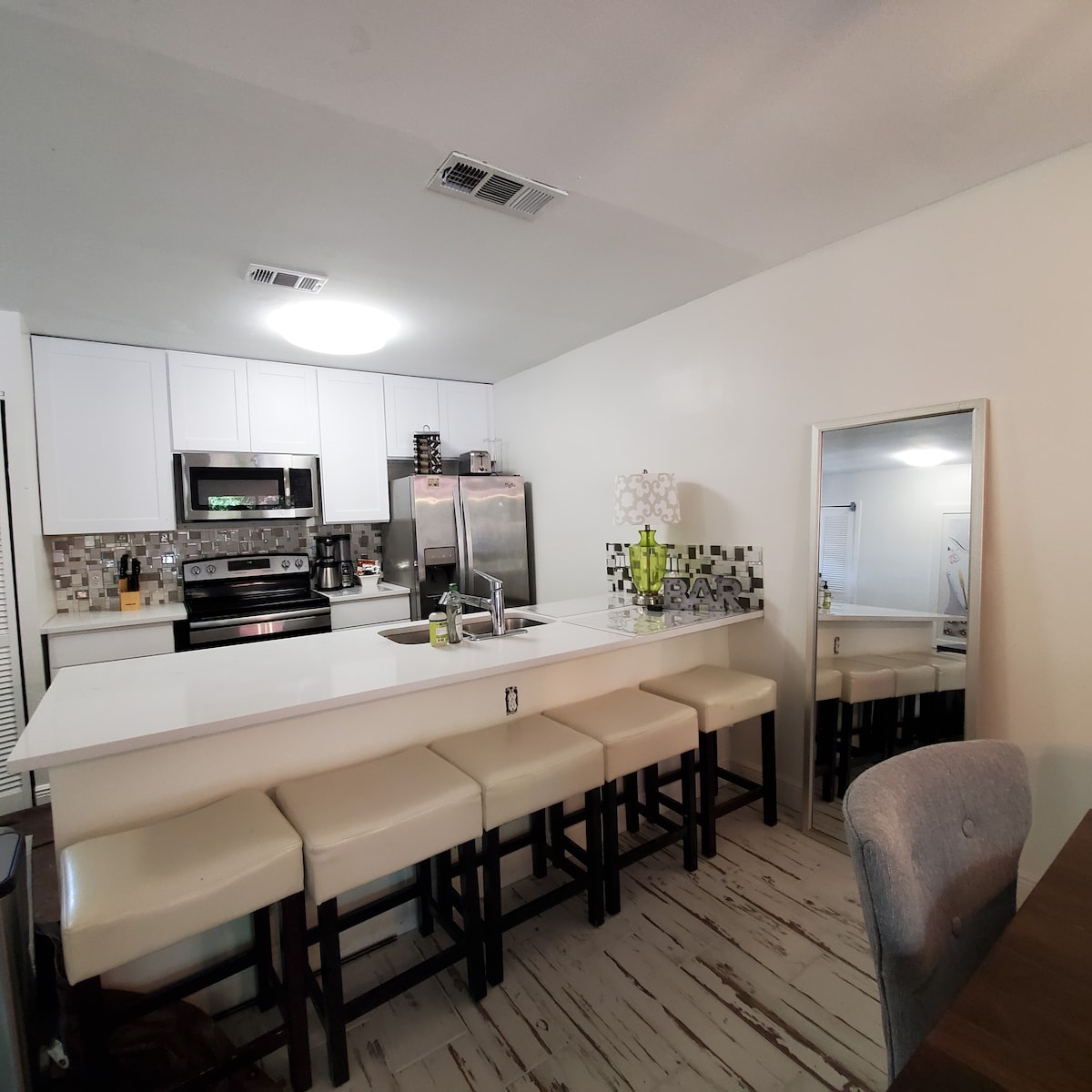 Alkalmas hétvégi harcosoknak, kis családoknak és üzleti utazóknak. Az otthonom egy csendes környéken található, nagy munkáltatók és látványosságok közelében: Dell, Apple, St. David 's North Austin Medical Center és The domain. Nyújtózzatok együtt egy szürke részen a párnák tengerében. Ébredj egy századközépi ihletésű mesterben, szemet gyönyörködtető falfestményekkel. A hagyományos és a kortárs elemek az antik virágokkal ötvözik. Élvezd a saját kerítéses udvart a háziállataiddal. Főzz lakomát a jól felszerelt konyhában és a szabadtéri gázgrillben. Kétszemélyes, összecsukható (nem elképzelt) ágy is rendelkezésre áll. Az egész házat szakszerűen kitakarítják az érkezés előtt, és egy 2 ágyas, 2 fürdőszobás, 1100 négyzetméteres, tanyasi stílusú otthon. Könnyű 24 órás hozzáférés kulcs nélküli belépéssel. Az érkezés előtt egy nappal automatikus SMS-ben megkapod a személyes ajtókódot. Az egész ház a rendelkezésedre áll, de szívesen állok rendelkezésedre, ha bármilyen kérdésed merülne fel. A legegyszerűbben az AirBnb-üzeneteken keresztül léphetsz velem kapcsolatba. SMS-ben és telefonon is elérhető vagyok. A ház Austin északi részén (Wells Branch környék), a MoPac Expressway & i-35 autópályák közelében található. Fedezz fel számos éttermet, kisboltot, közösségi parkot és közösségi medencét mindössze néhány perc sétára a háztól. Austin belvárosa autóval délre található. A 100 előkelő és mainstream boltot és éttermet kínáló tartomány pedig, amelynek majdnem fele exkluzív a piacon belül, 10 perces autóútra található. A Howard vasútállomás 6 percnyi autóútra (és 25 perces sétára) van a házamtól, és könnyen eljuthatsz a belvárosba (az utolsó megálló az Austin Convention Center mellett található) és vissza.