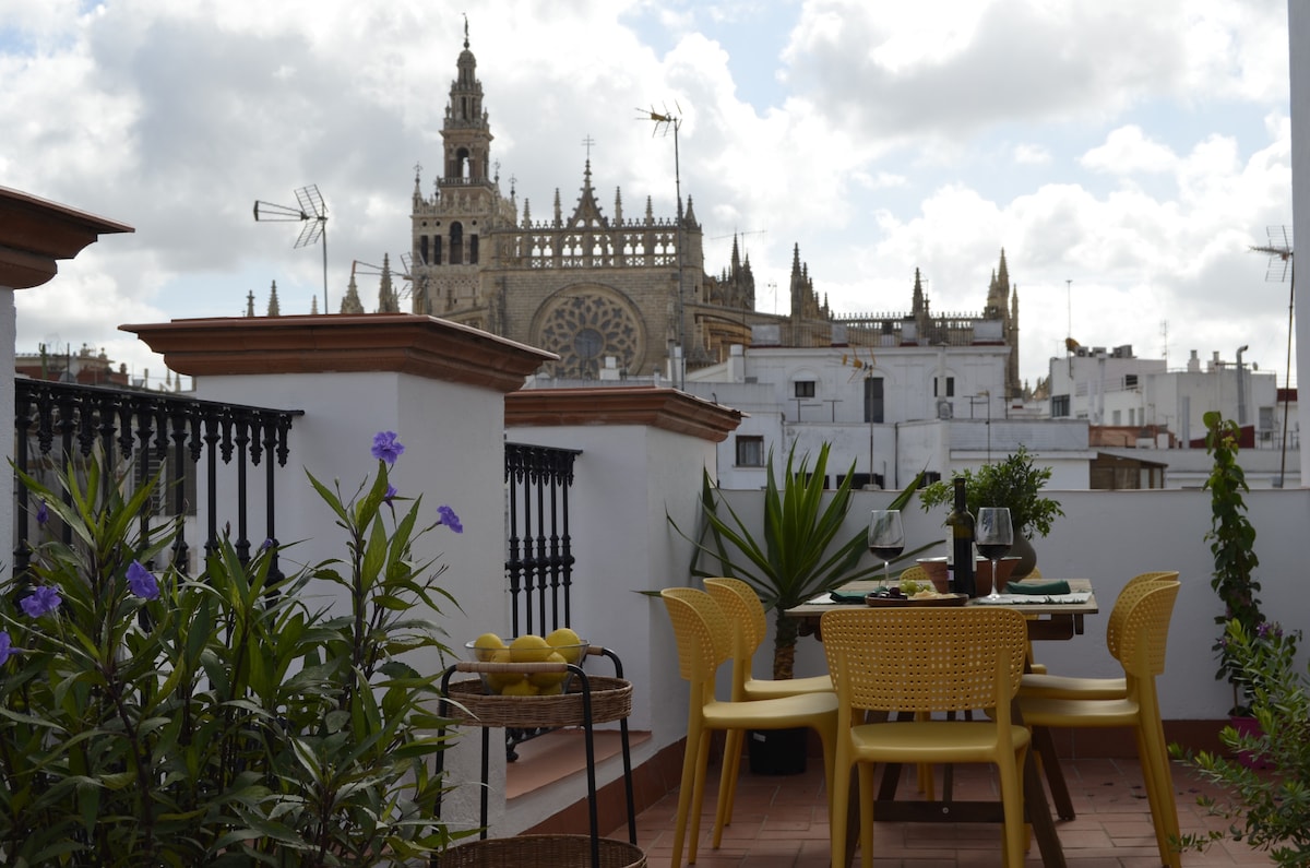 Ez a luxuslakás Sevilla szívében található, az UNESCO világörökségi emlékműveivel szemben: a székesegyház, a Giralda, az Archivo de Indias és a Royal Alcázars. Modern dizájnnal, 1 hálószobával, 1 fürdőszobával, Smart TV-vel felszerelt nappalival és teljesen felszerelt konyhával, csúcskategóriás készülékekkel, például kenyérpirítóval, turmixgéppel, sütővel, vízforralóval és Nespresso kávéfőzővel rendelkezik. Emellett saját terasszal is rendelkezik, ahonnan lenyűgöző kilátás nyílik a város fő műemlékeire.