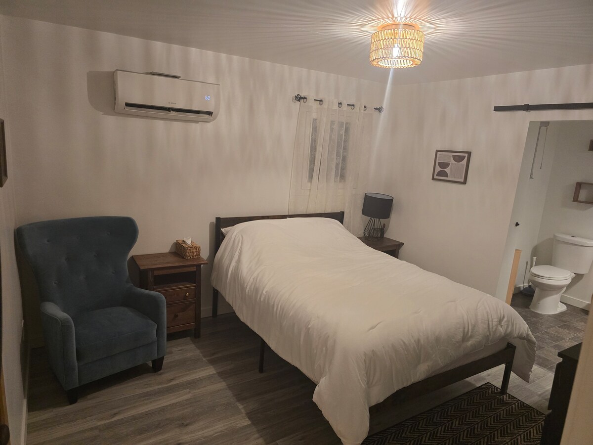 Welcome to our lush and nostalgic blend of mid-century modern and 70's era suite in Regina! Discover the perfect blend of retro flair and modern comfort with a dedicated workspace, a large TV and sectional couch, and vibrant plants that add a touch of nature. With a prime location next to the multi-use pathway along the creek, close to shopping, dining, and entertainment, this unique oasis is sure to steal your heart. Book now and experience a calm and rejuvenating stay!
