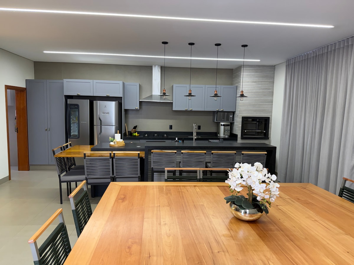 @Rancho Gustavo Henrique, casa com 3 suítes com ar condicionado, sala espaçosa , quiosque grande ,lavadora e secadora de roupa , ferro de passar roupa . Ideal p quem quer passar muitos dias e com praticidade ,tudo muito limpo e tem 3 camas e 6 colchão casal . lugar de muito silêncio. no residencial não aceita som alto . ambiente familiar. excelente para pescaria e bons dias de descanso. Temos as melhores avaliações e nota máxima nas redes sociais e no Google .