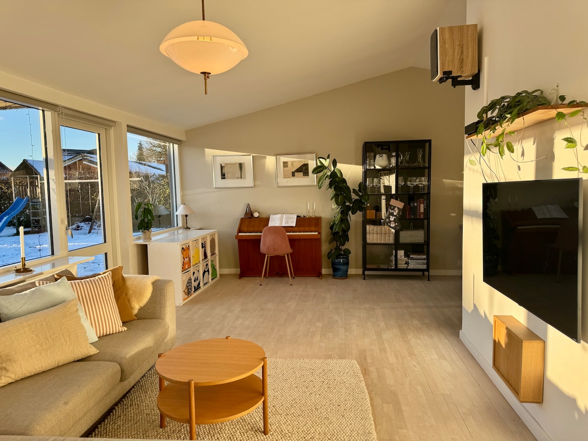 Modern családi ház egy zsákutcában végződő, csendes utcán, Koppenhága közelében. A napelemes tető és a hőszivattyú zöld energiával látja el a sorházat, a napsütötte kertben pedig élvezheted a fűtött medencét, valamint a társalgót és az étkezőt az oranžeriben. Az autótöltő és a kábel a kocsibeállóban található. A házban 10 ágy van 5 szobában. A strand és az erdő, valamint a vonat/busz 2 km-es körzetben található. Bevásárlás és elvitel kevesebb mint 1 kilométerre.