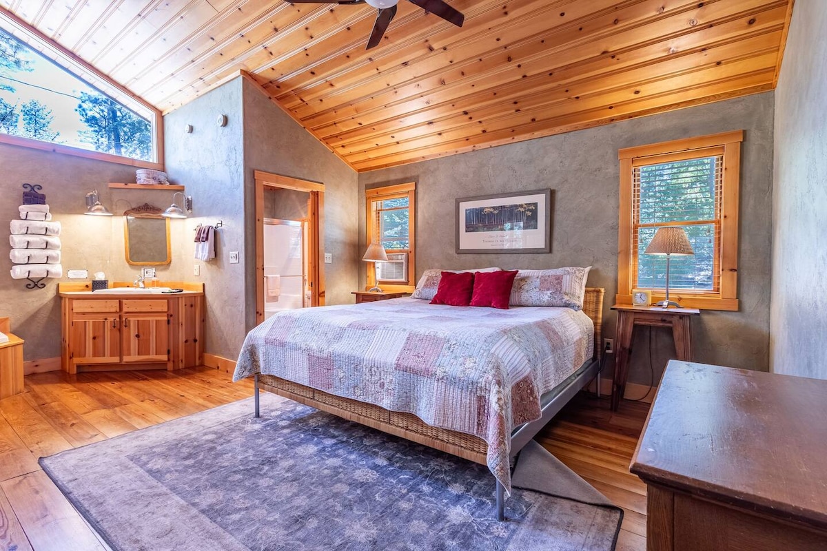 A „Sprucewood” a népszerű és erdős Upper Canyon néhány eredeti, 1940-es évekbeli split-log víkendházának egyike. Az új, modern, rusztikus dizájnnal teli történelmi gyöngyszem a domb tetején, amelynek teraszáról távoli hegycsúcsokra, fenyőkre és víkendházakra nyílik kilátás. Barátságos szarvasok sétálnak végig az udvaron. A folyó festői sétányira van. Egy könnyű túra a Perk Canyon erdeiben 2 perces autóútra, az üzletek és éttermek pedig 5 perces autóútra találhatók. Pezsgőfürdővel és sípályadekorációval sikoltozik a hegyi víkendházakból