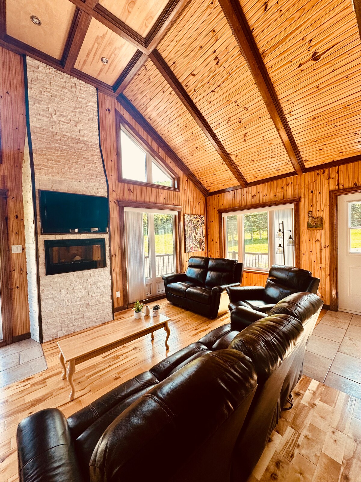 A természet közepén elhelyezkedő svájci faházból lenyűgöző kilátás nyílik a Chic-Chocs hegycsoportra. A Cap-Seize-ben található, 15 percre Sainte-Anne-des-Monts központjától és 10 percre a Gîte du Mont-Albert-tól, ideális a szabadtéri tevékenységek szerelmeseinek! Közvetlen hozzáférés a közterületekhez és számos túraútvonalhoz az udvarról, ami lehetővé teszi a hegyi kerékpározást, a motoros szánkózást, a túrázást, a hótalpas sétát, a síelést, a vadászatot. Nyáron és télen is tökéletes hely, hogy kikapcsolódj, kifújhasd magad, és felfedezd a Chic-Chocs és a Gaspésie vidékét.