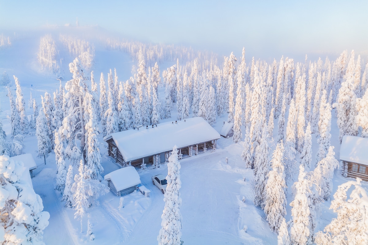 Valódi lappországi faház Rukában|Szauna|Kandalló|Sífutópálya 50 m