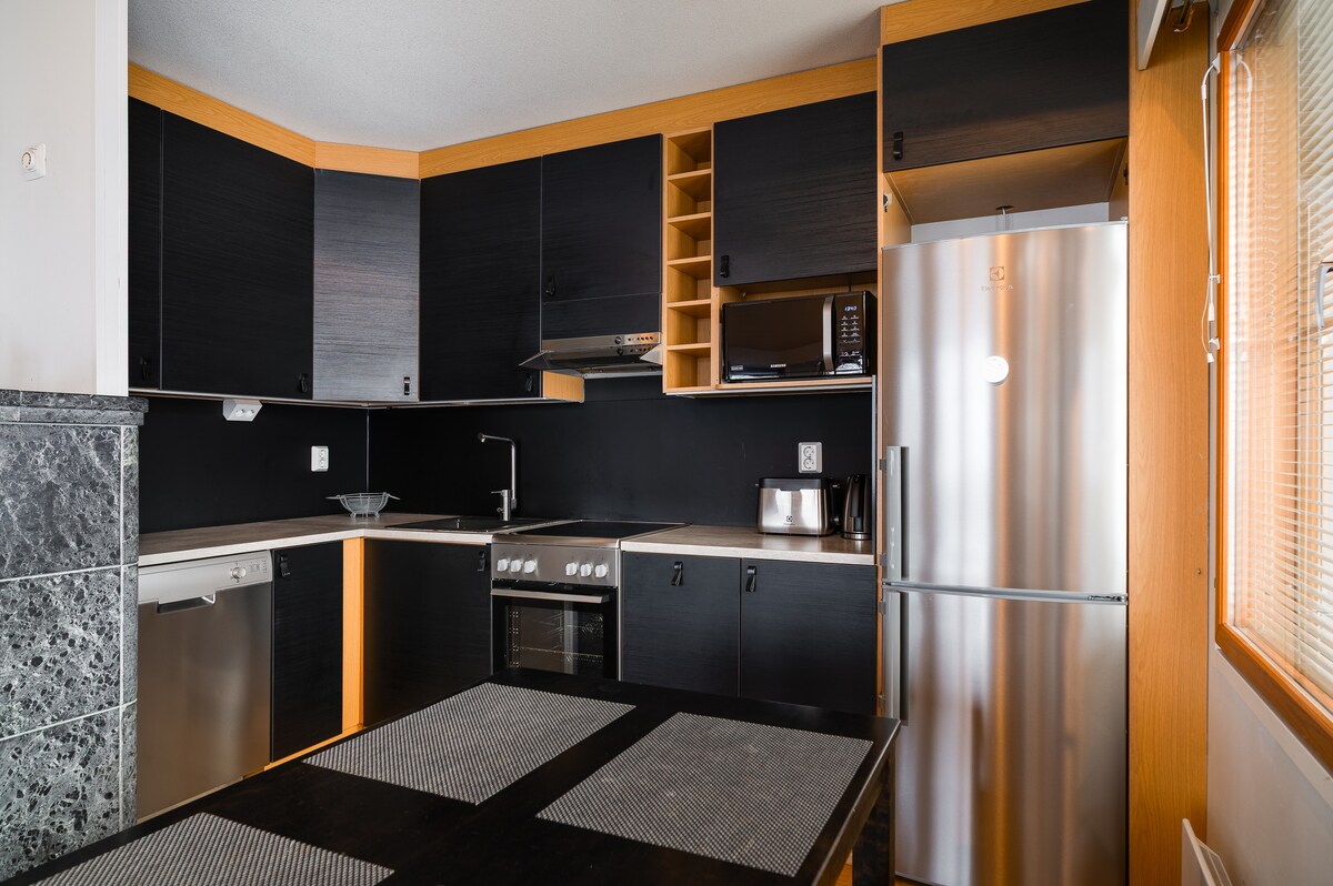 A safe and comfortable home base to recharge for the adventures of the next day! ° renovated 46 m2 home + 7 m2 loft ° fully equipped with all the modern facilities ° air-conditioning ° sauna and balcony ° 2 free parking spaces ° private electrical car station ° quiet area next to Rukatunturi » 150 m to SkiBus » 500 m to the cross country trails » 800 m to nearest ski lift » 1 km to store » ~20 km to national parks Note! Please bring your own bed linen and towels during your stay.