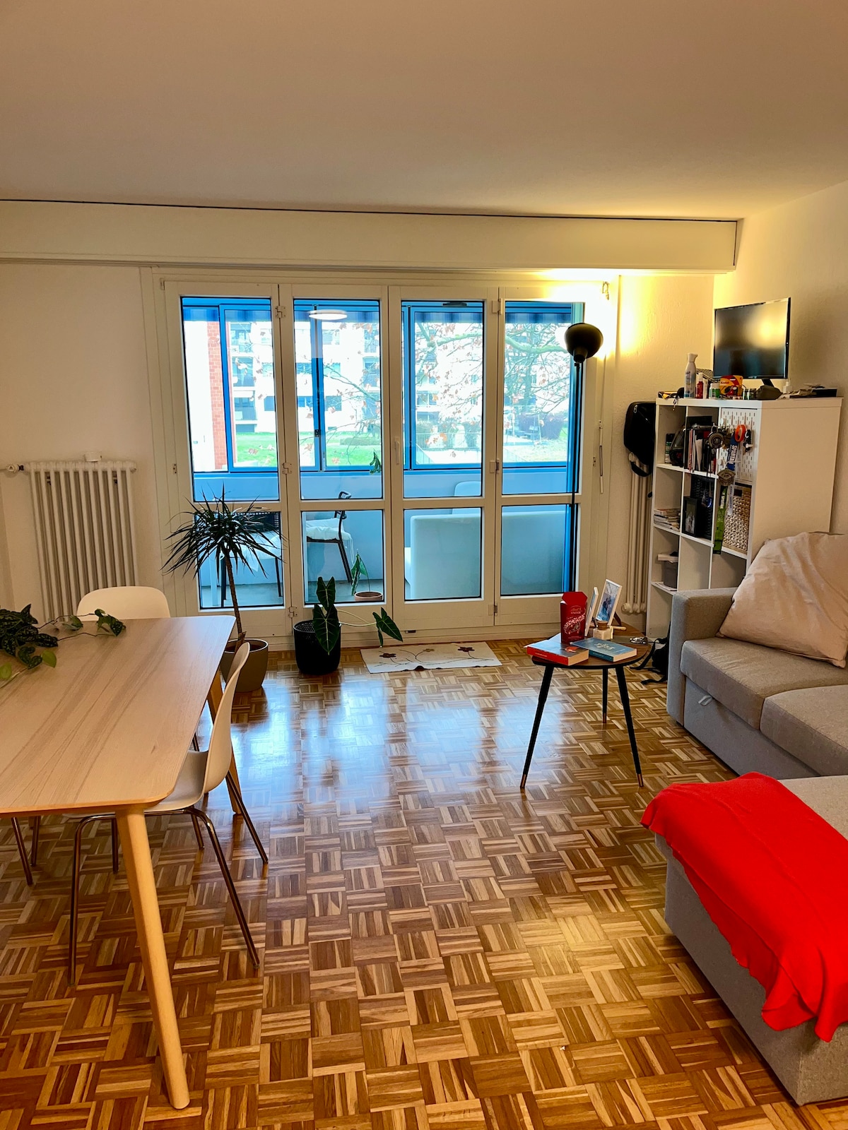 Dachgeschosswohnung in sicherem Wohnquartier in Zürich Seebach. mit dem öffentlichen Verkehr bist du in rund 20 Minuten am Flughafen oder in der Innenstadt. Zum Hallenstadion kannst du zu Fuss zum Konzert und dein Auto gratis stehen lassen. Die Wohnung hat keinen Balkon, aber einen Garten mit Grillplatz. Achtung: Die Wohnung liegt im 3. Stock ohne Lift (48 Treppenstufen). Im Moment ist neben dem Haus seine Baustelle, es kann ab 7.00 Uhr zu etwas Baulärm kommen. spare Geld und koche selbst