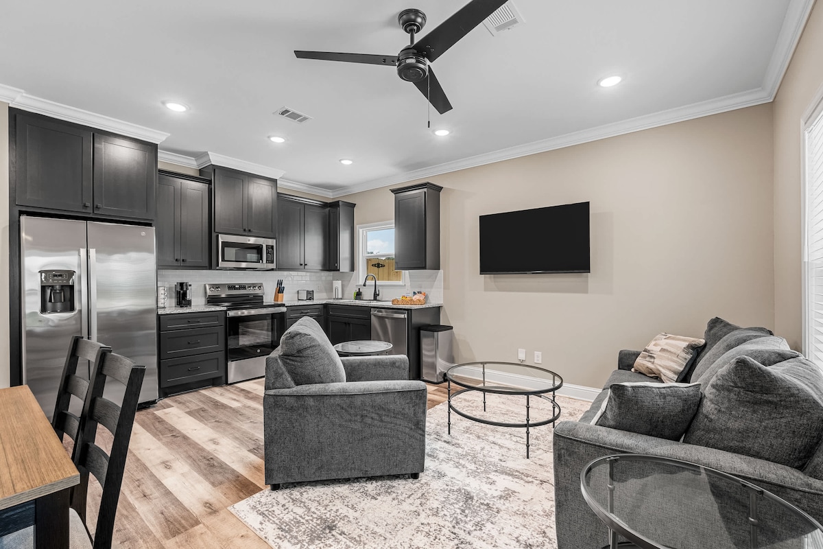 Az otthon minden kényelmét a nagyi kis házában találod. Teljes konyha az ételek elkészítéséhez, ha úgy döntesz, és egy kényelmes kanapé, ahol pihenhetsz, és elolvashatsz egy könyvet, vagy dőlj hátra, és nézz tévét. Az a/c szép és hideg, a queen méretű ágy pedig nagyon kényelmes. Tágas fürdőszoba zuhanyozáshoz vagy hosszú fürdéshez. Könnyen megközelíthető, és mindössze 2 percre van az autópályától. A Landry 's Vinyard, az Antique Ally, a Duck Co. Tour és számos étterem és vásárlás mindössze 5-15 percre található. Kurig kávéval és teával.