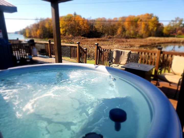 Egész évben használható tóparti ház medencével és pezsgőfürdővel