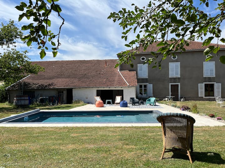 Nagy ház, vidéki környezet, medence, 10 férőhely.