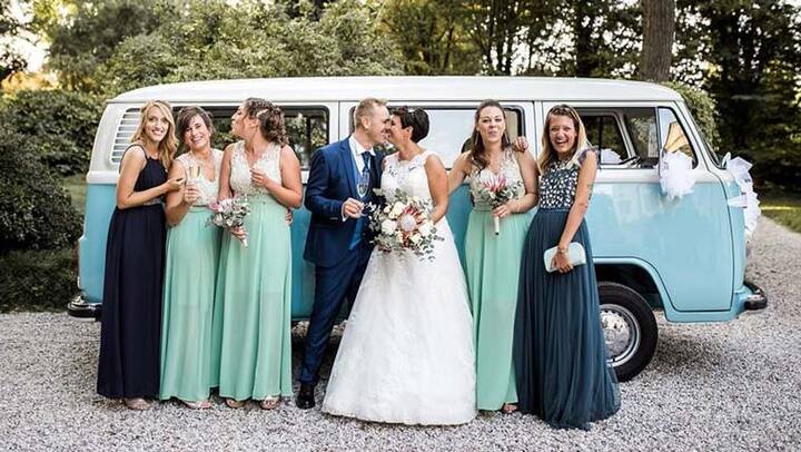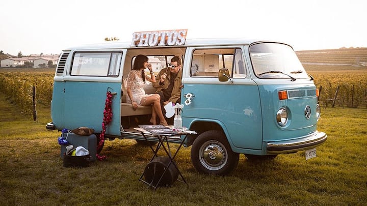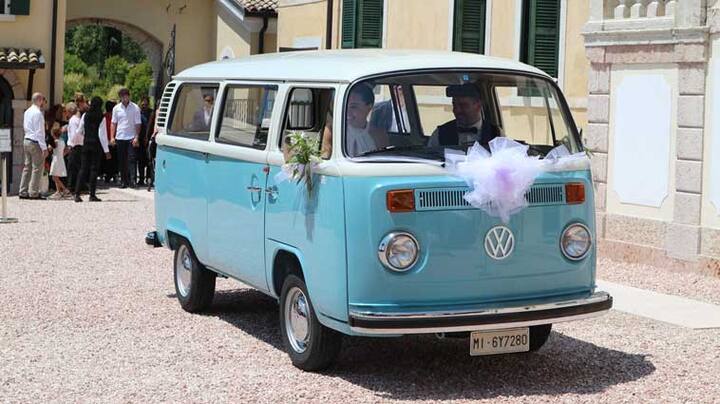 Genova panorámája Volkswagen hippie-ben borral
