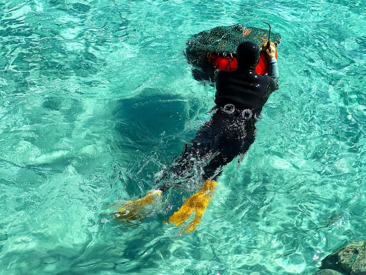 Gyöngyház mobil készítése, amely Jeju csillogó tengerét ábrázolja