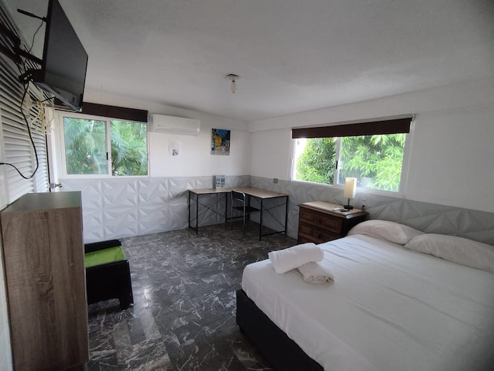 Kétágyas szoba íróasztallal, ideális otthoni irodának