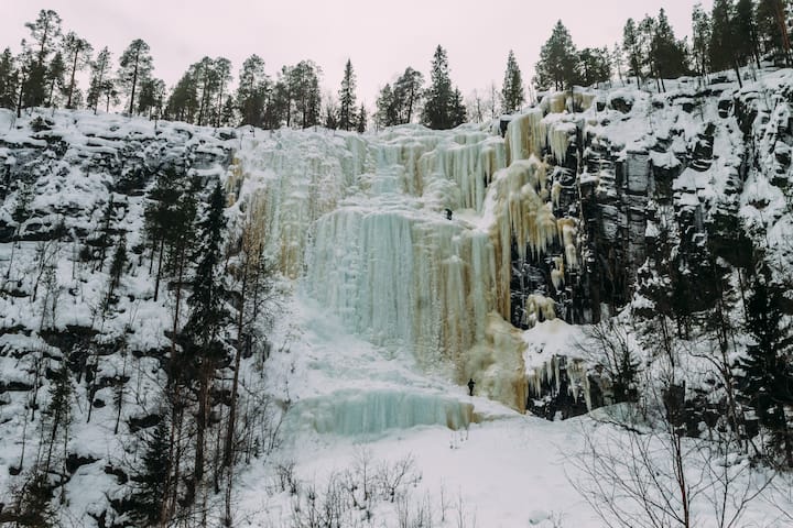 Túrázás és grillezés a Korouoma fagyott vízeséseinél