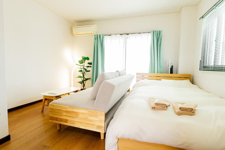 Modern szoba aranyos kutyákkal és macskákkal/Sibuja, Jokohama, jó elérés a Haneda repülőtérre, ingyenes transzfer, reggeli, kerékpár