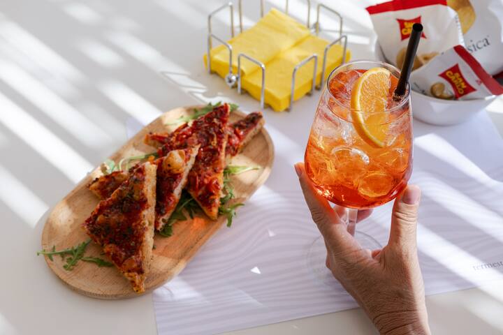 Nápolyi pizzalecke előételekkel és italokkal