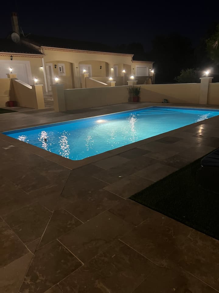 Báj, zöldellő növényzet, kikapcsolódás a medencénél, nyugalom