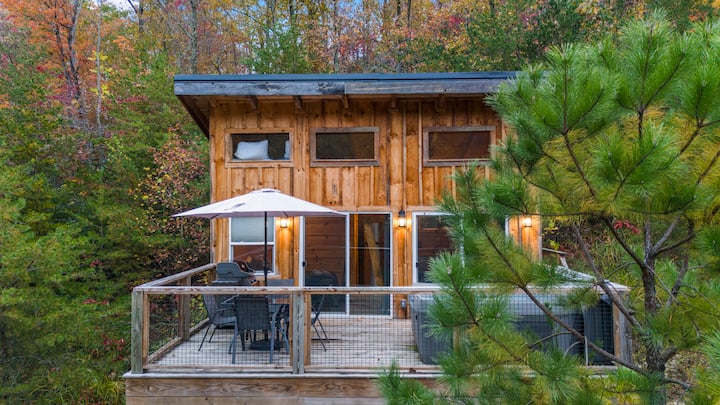 Pezsgőfürdő, tűzrakóhely, Wi-Fi és EV töltés – Biggie Cabin