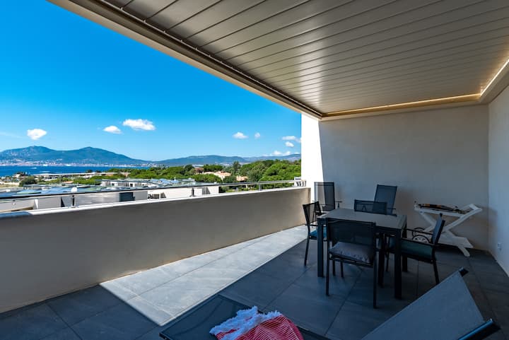 Kivételes kilátás a tengerre, medence, tenisz Porticcio-ban