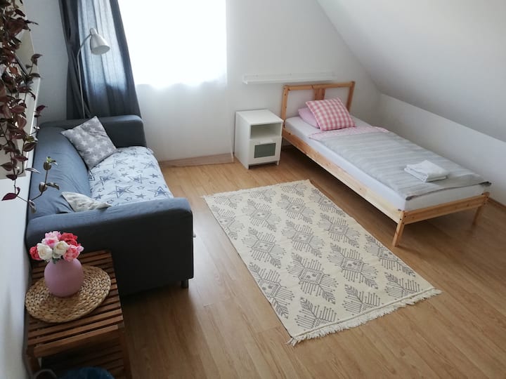 SMILEY - RÓZSASZÍN SZOBA egy családi ház padlóján