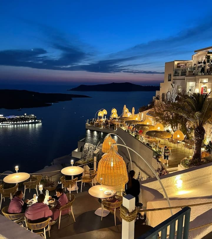 Étkezés és séta Szantorinon