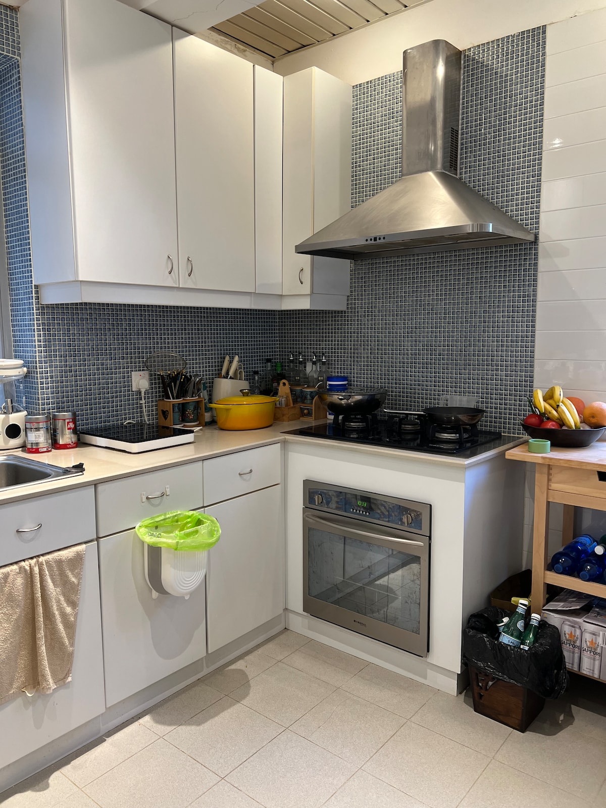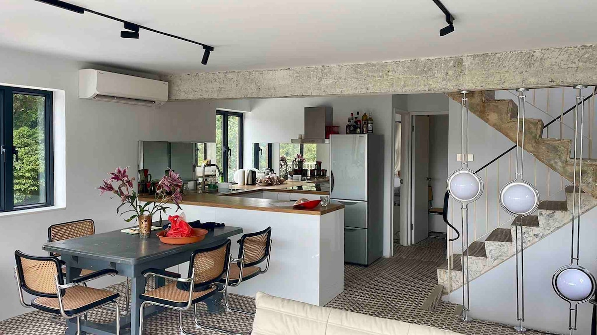 Enjoy a stylish experience at this centrally-located converted loft-style space with king bed, natural light, dual workspaces, modern design, fast wifi, washer/dryer, exercise equipment, folding bike, ample storage space, TV and Playstation, and a rooftop. The apartment is a 5-floor walk up (we're happy to help with luggage) located 1-min walk from Sheung Wan MTR station. The location is very convenient. The kitchenette is basic with an induction, toaster oven, blender, utensils, etc